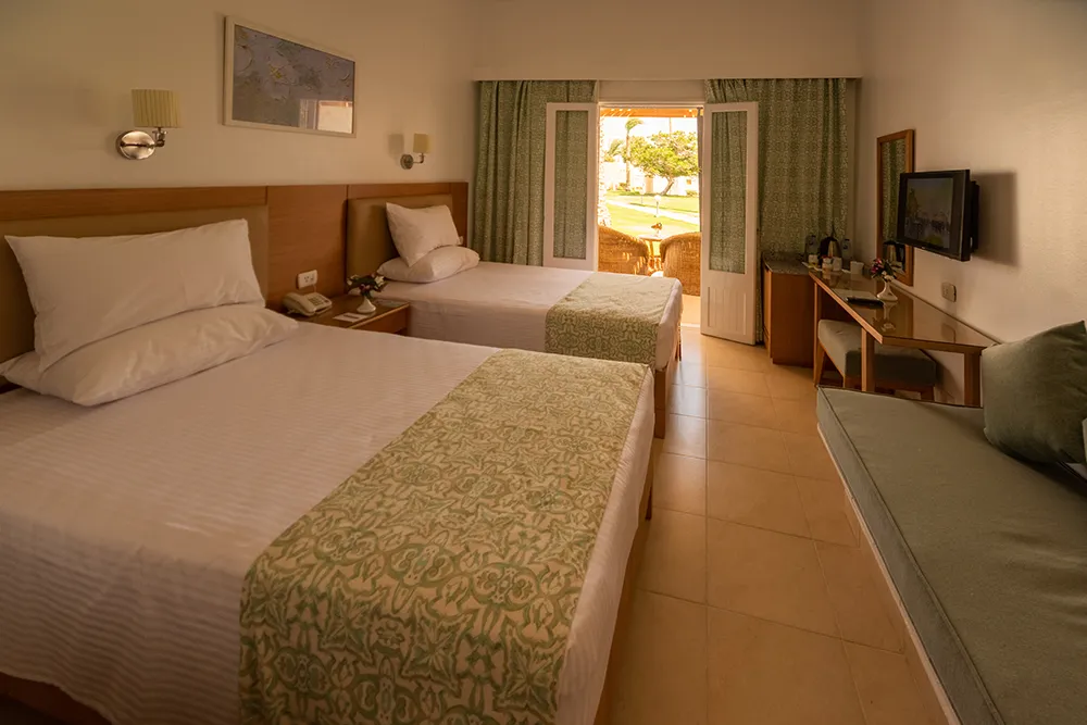 - Beachfront resort between the Sinai Mountains and the Red Sea lagoon.