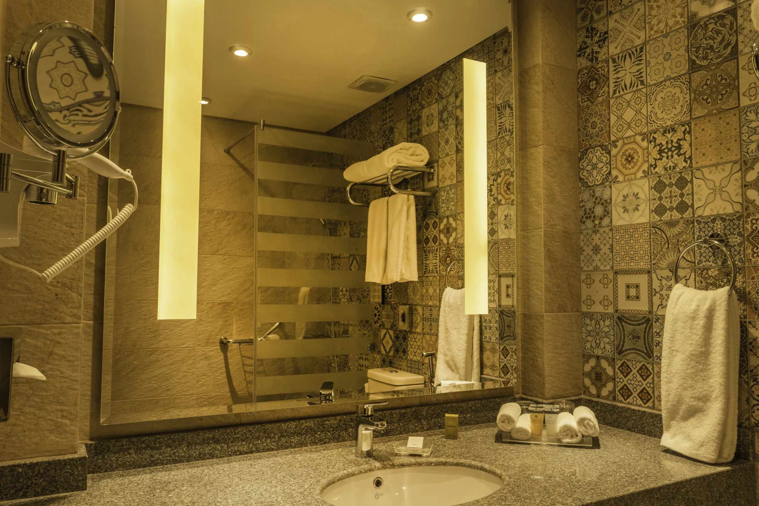 - Every room comes with comforts such as high-speed Wi-Fi, A/C, LCD satellite TV, minibar, tea/coffee maker, bathrobes, slippers, hairdryer, safe, and more.